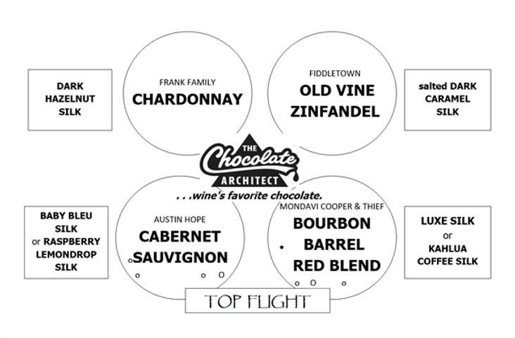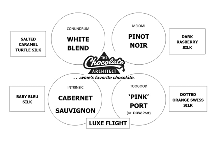 Her seasonal menu offers up 16-20 varieties from a master list of nearly 70 now--darks, milks, semi-sweets and an irresistible new cake batter series of white chocolates.The presentation... to die for. From weddings to corporate events their customized gifts, favors and catered trays are a stand-out array for any occasion, intimate or colossal. Current customers encompass corporate to car dealers to Whole Foods Market to area wineries. They deliver locally, and ship nationwide. Shop online or venture in to enjoy a fresh sample or two at the counter daily from her delightful staff. New? Baby Bleu Chocolate Silk. Savor the crescendo!
