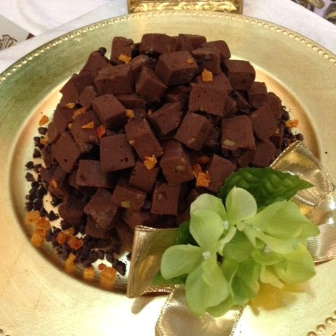 In multiples, for parties large or small, when you must try them all! 200 Bite size mini-blocks of Chocolate Silk tumbled sumptuously in a mound on a decorative acrylic tray. Please specify. White delivery box or clear cellophane gift wrap with gold appointments. Hint: Serve as hors d'oeuvres with decorative toothpicks displayed in shot glasses. Viola!